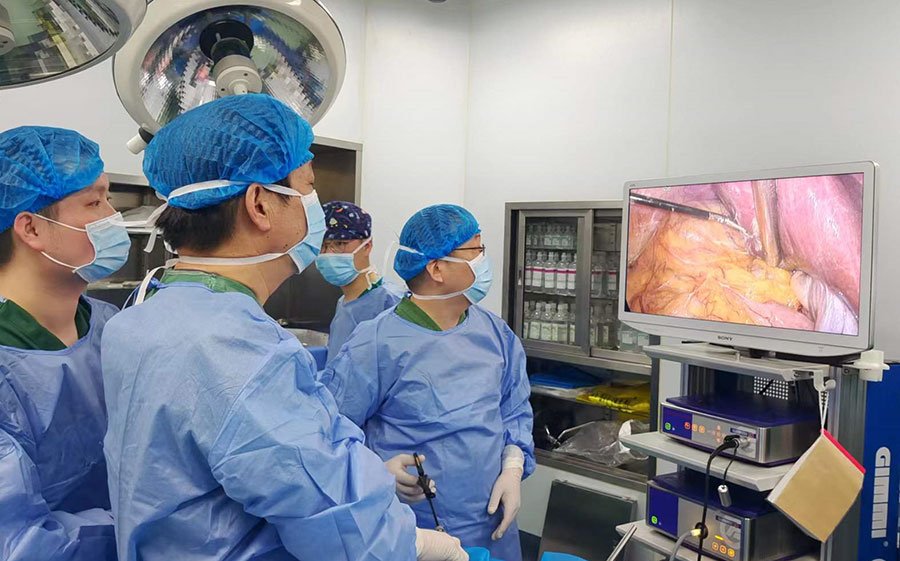 經(jīng)心內(nèi)科、麻醉科、肝膽外科共同參與救治,約30分鐘后患者心率逐漸下降至90次 /分左右,節(jié)律整齊,患者不適癥狀也完全消失??紤]到患者病變近期增長(zhǎng)較快,之前已經(jīng)輾轉(zhuǎn)多家醫(yī)院,病情不宜再拖,因此,在院黨委書(shū)記肝膽外科專家黃合超的建議下,經(jīng)過(guò)多學(xué)科共同商討,最終一致決定和家屬共同后立即手術(shù)治療!麻醉誘導(dǎo)平穩(wěn)、插管順利、無(wú)不良應(yīng)激、手術(shù)順利、書(shū)中生命體征平穩(wěn)......歷時(shí)150分鐘,最終患者手術(shù)順利完成。