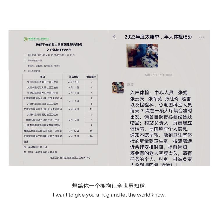 由社區(qū)支部黨員帶領(lǐng)的5---6人組成的小分隊每天早上7點從中心集合出發(fā) 前往轄區(qū)居民的各個小區(qū)村落進(jìn)行居家體檢 走街串巷 頂酷暑 冒風(fēng)雨 將國家政策與黨的政策傳遞給老百姓 服務(wù)好轄區(qū)的每一位居民